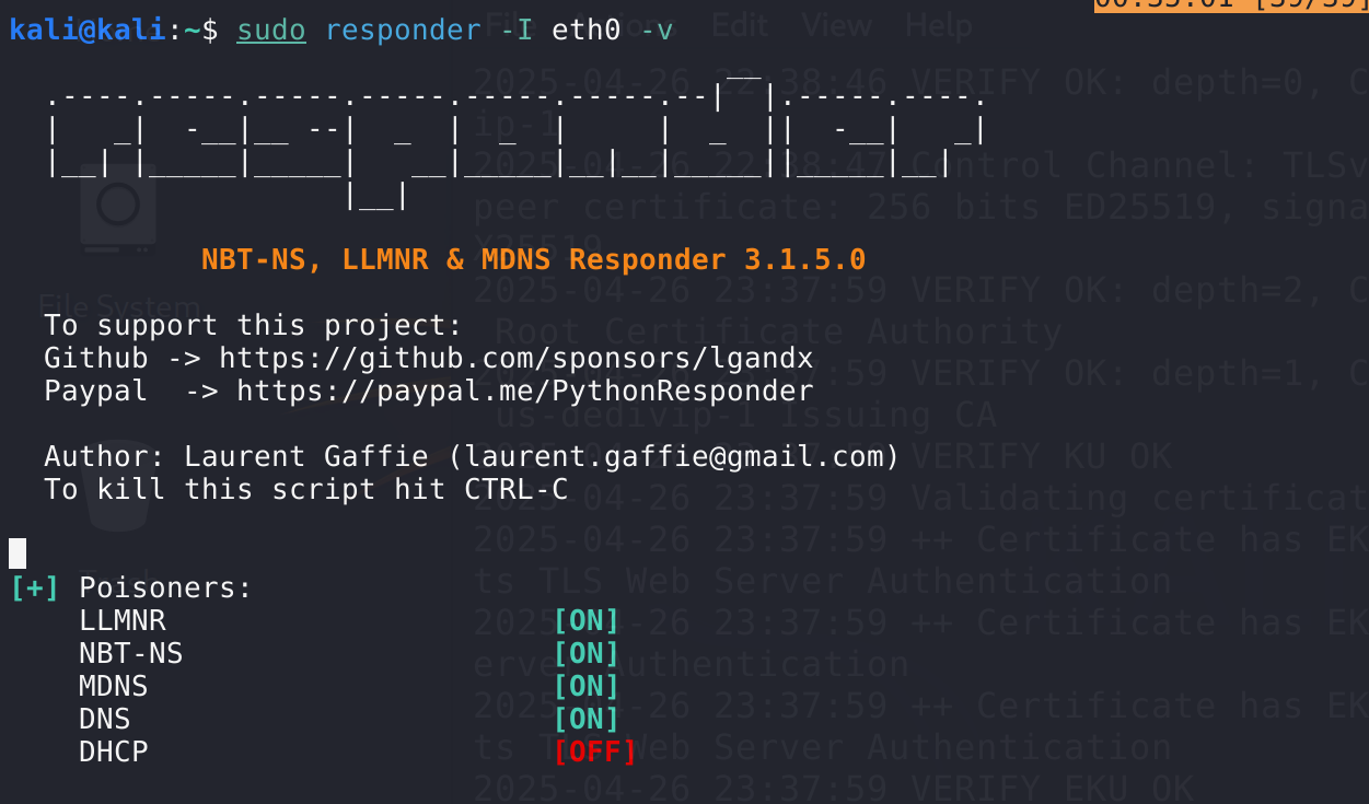这里,可以使用responder来欺骗目标,原理和ARP欺骗大致相同