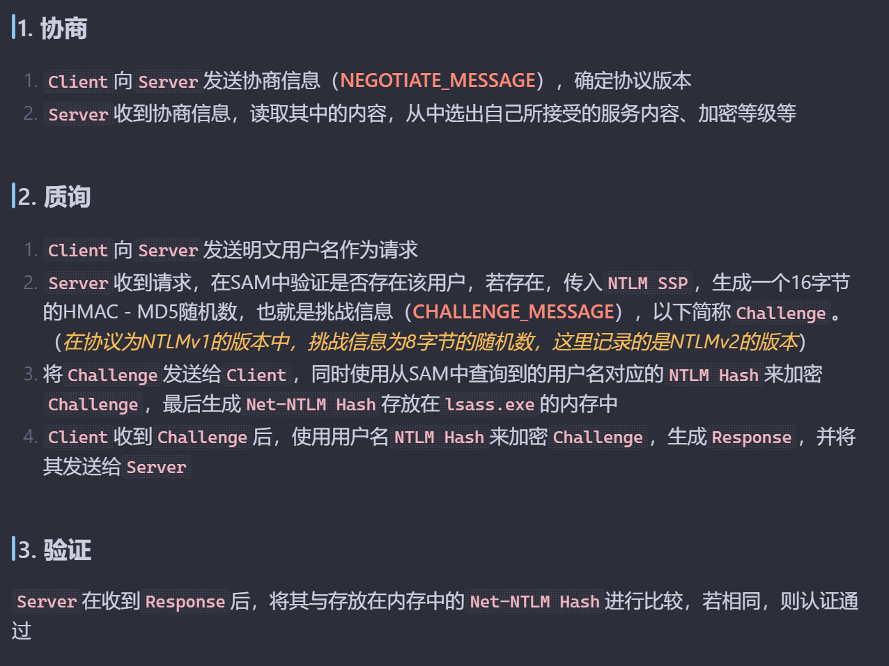 非域环境下,一般采用的是NTLM认证,早期是LM(Line Manager),由于安全性过低,因此诞生了NTLMv1,在这基础上又诞生了安全性更高的NTLMv2,但在使用弱密码的情况下,还是存在被破解的可能