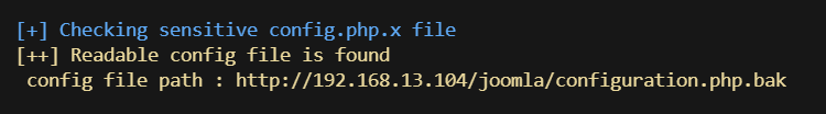 - web信息收集扫出joomla,使用joomscan进一步信息收集,获得config备份文件,其中包含mysql用户名,且无需密码登陆