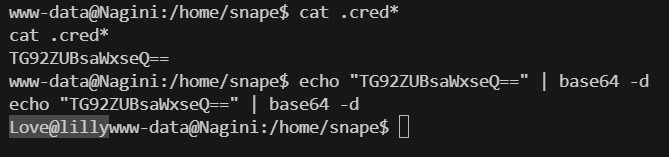 先来看看snape下的.creds.txt,是一串base64编码,解码后得到内容如下: