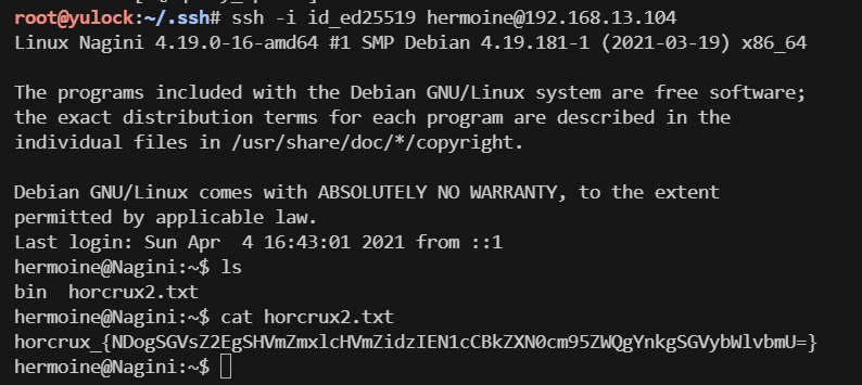 - 发现hermonie下的SUID文件为cp命令,将攻击机的公钥写入hermonie的authorized_keys,实现ssh私钥登陆
