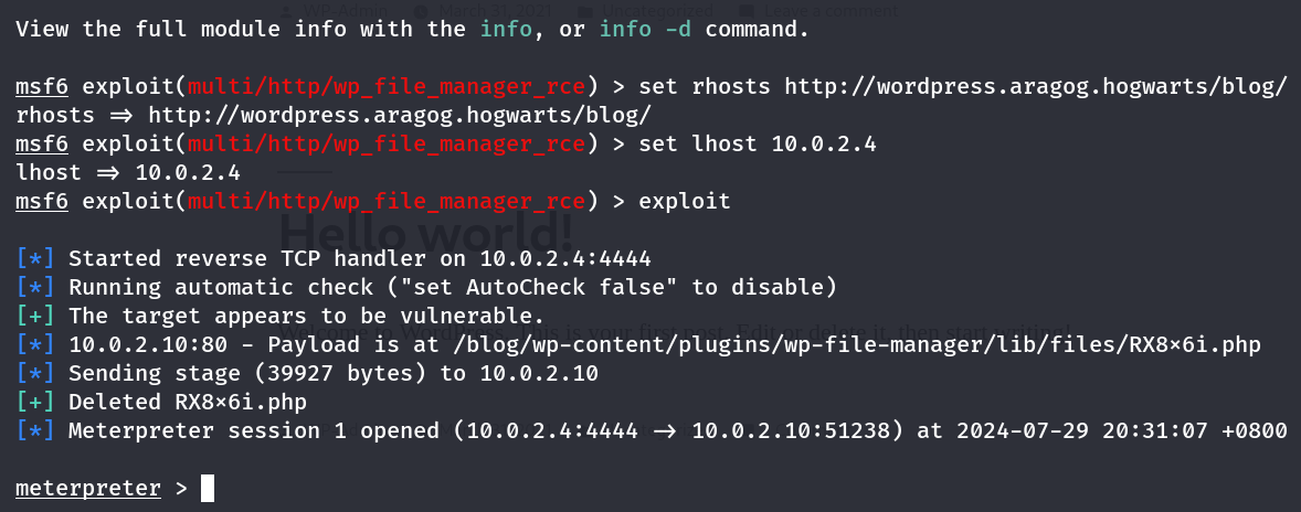 - 采用了wordpress框架,用wpscan进行漏洞扫描,扫出wp-file-manager插件与可利用的RCE漏洞