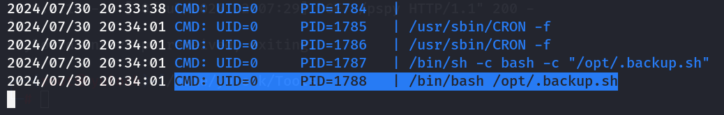 猜测是定期执行的bash脚本,用于备份网站上传文件,那么应该会有它的进程,可以用pspy来监控进程,来看看它是否由root用户执行