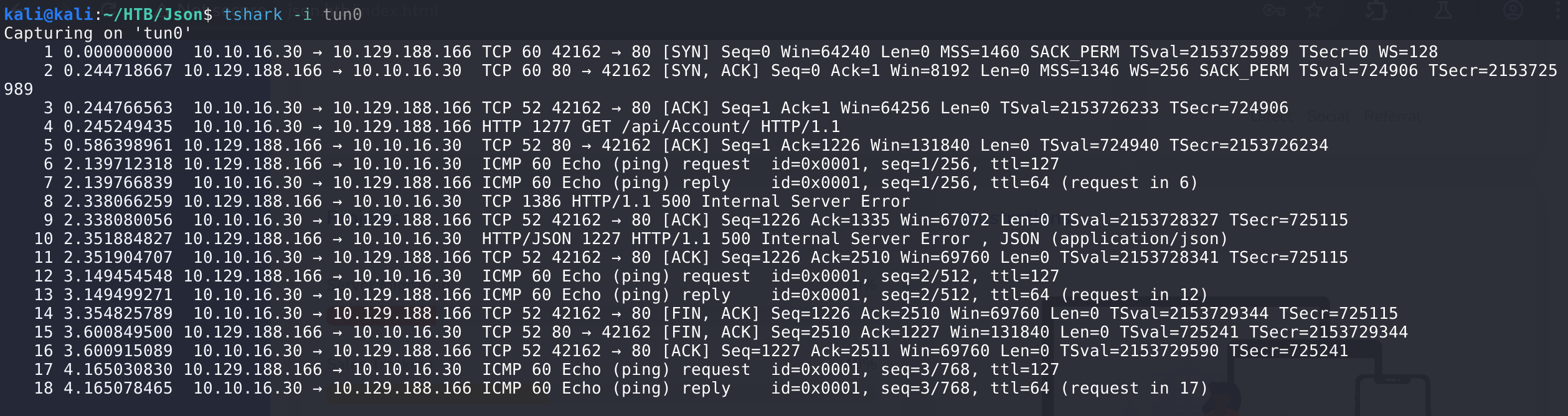 将生成的Base64字符串复制到Bearer字段中并发包,同时在本地用tshark监听,结果如下: