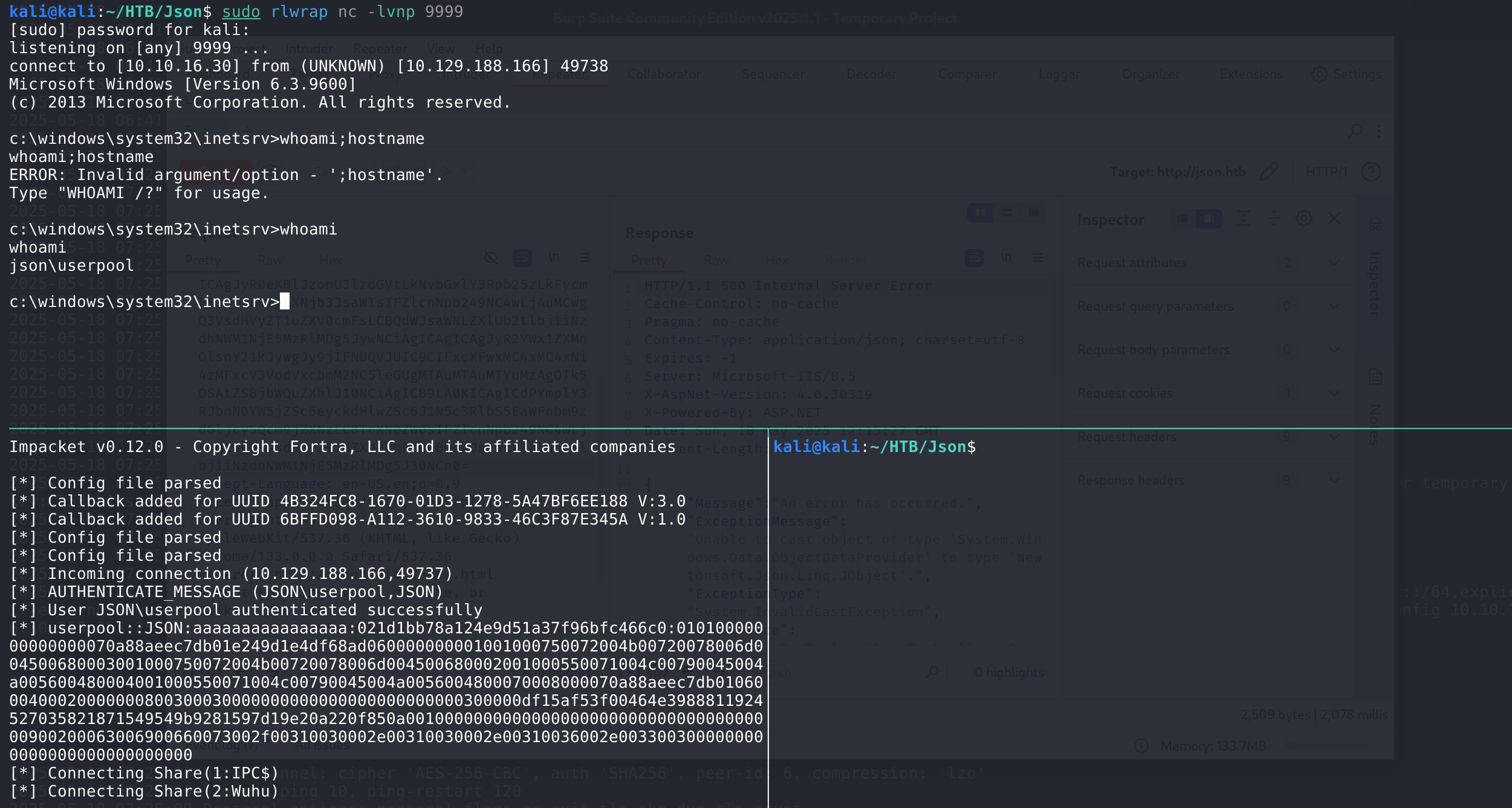 使用web下的.net反序列化反弹shell->枚举信息发现存在SeImpersonatePrivilege权限->PrintSpoofer提权