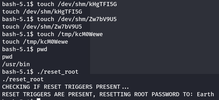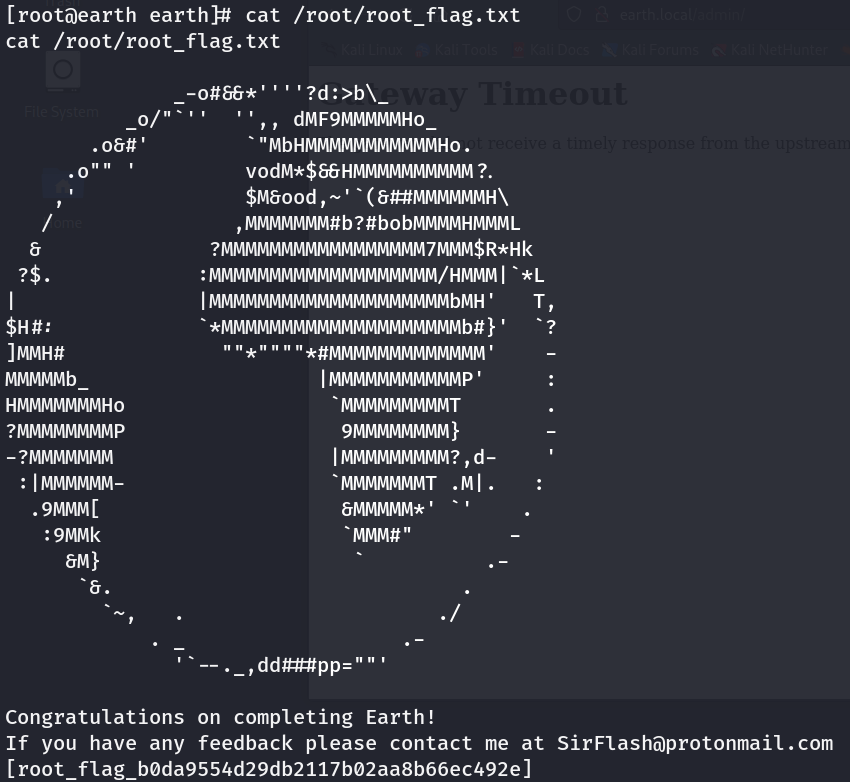 可以看到root密码已被成功重置为Earth 之后切换到root用户,flag就在root目录下,这台靶机就拿下了
