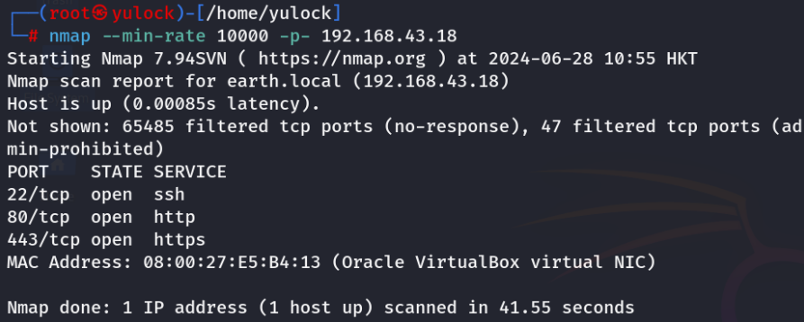 进行端口扫描:nmap --min-rate 10000 -p- 192.168.43.18