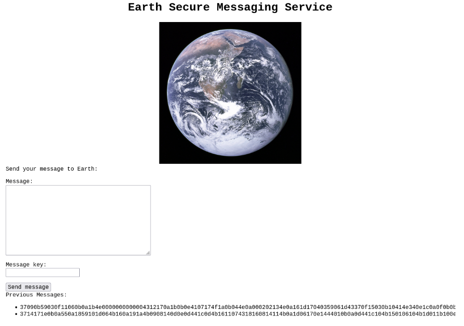 简单看了一下页面,是个信息发送的网页,加密后的信息被放在的页面下方,但是我们不清楚加密方式,也没有密钥,因此无法查看之前发送的信息