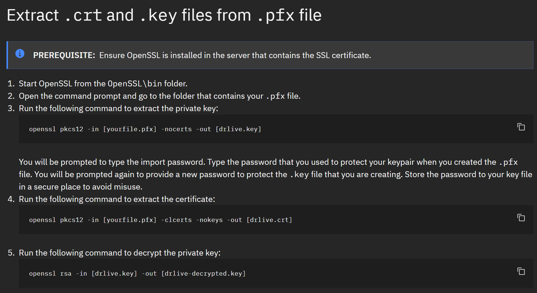 这里涉及了x.509相关的知识,pfx是一种归档文件,可同时存储证书、私钥等内容,在IBM的官方文档下告诉了我们如何提取其中的证书与私钥