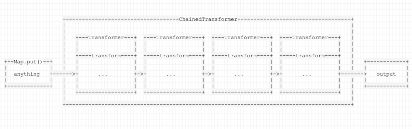 一个实现了Transformer接口的类,用于将内部的多个Transformer串联在一起,前一个Transformer的回调的返回结果,作为后一个Transformer的回调的参数传入,这里用引用p神的示意图便于理解: